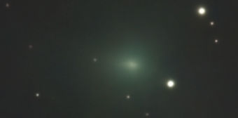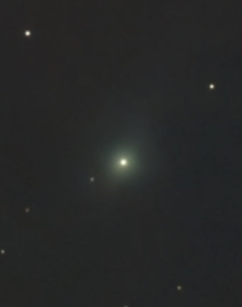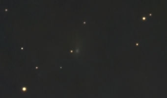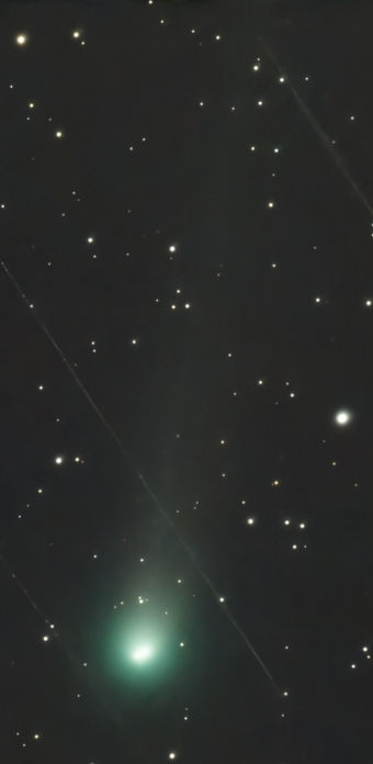 Auf der Aufnahme von Frank Vohla vom selben Morgen ist der Komet gegenüber den Hintergrundsternen versetzt. Eine Bewegung war bereits nach einigen Minuten erkennbar.
