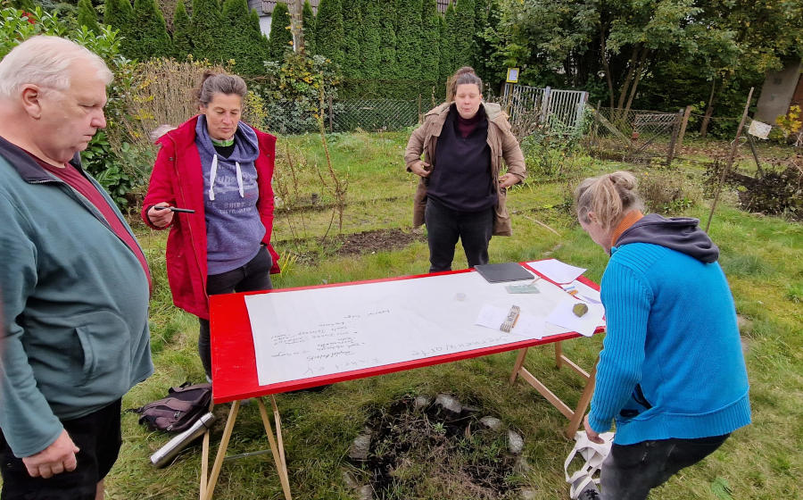 Die erste Veranstaltung des Astronomietags war ein Brainstorming über die Zukunft der Laube des Sternengartens. Das Dach ist nicht mehr zu reparieren. Deshalb soll es vorausschauend durch etwas Sternwartentaugliches ersetzt werden. Es wurden zahlreiche Ideen gesammelt. Meist wurde ein abschiebbares Dach bevorzugt, wobei es Argumente für ein Flachdach und ein Satteldach gab. Mit dabei war der Künstler Thomas Suchomel.
