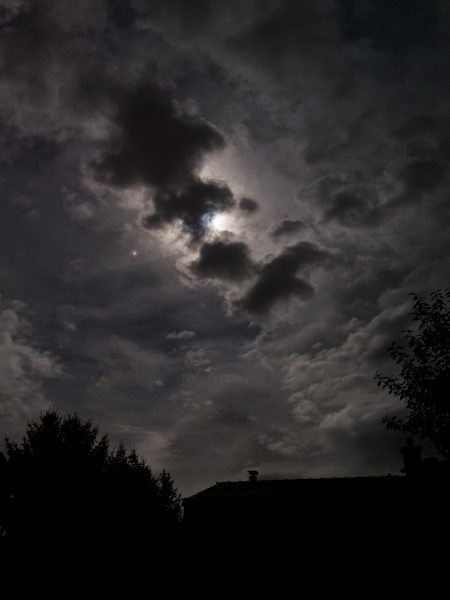 von Zeit zu Zeit bildeten sich "Milchstraßen" aus Wolken, doch zeigte sich der Mond immer wieder in Wolkenlücken.
