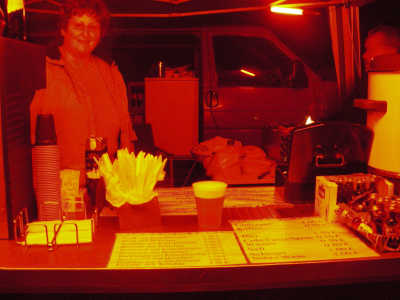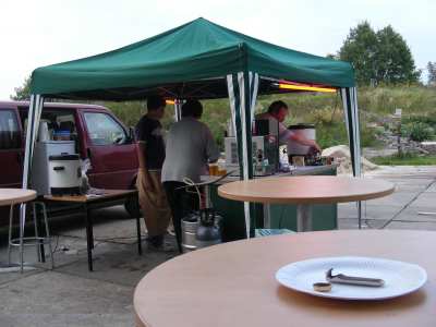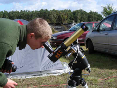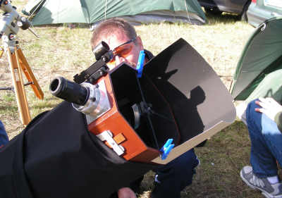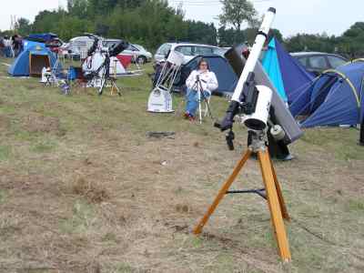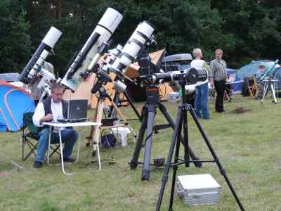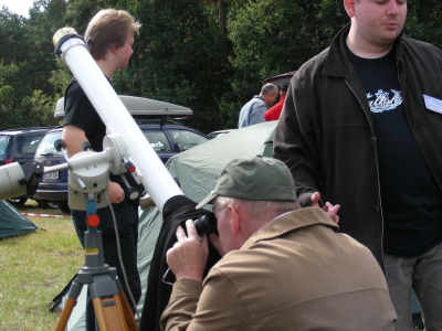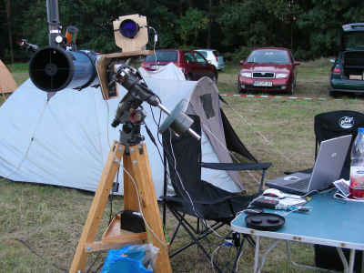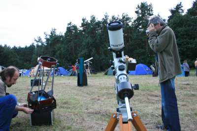 Das Angebot an Essen und Trinken war OK. Die Preise waren fair. Irgendwann fing es an, zu regnen. Die Nacht schien ins Wasser zu fallen. Doch nach 3:00 MESZ wurde Alarm ausgelöst. Es klarte auf. Unsere Instrumente hatten draußen den Regen überstanden und wurden sofort benutzt.