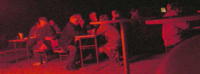 Der H-alpha-Biergarten nahm die Arbeit auf. Bier wird ausgeschenkt und die roten Leuchtstofflampen sind eingeschaltet.