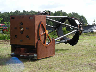 Beim zum Horizont geschwenkten 107-cm-Dobson war nun die Unterseite mit Lüftern zu sehen. Der Wind wehte kräftig und schwenkte das Instrument hin und her.