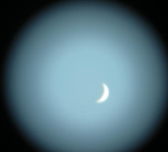 die Venus, hier mit einer an das Okular gehaltenen Digitalkamera fotografiert.