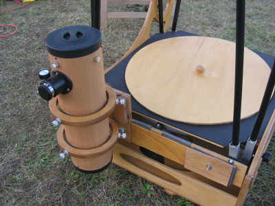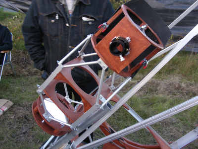 Das Einstellen von Objekten in Zenitnähe ist mit gewöhnlichen Dobsons schwierig. Mit einem solchen Kugeldobsen gibt es keine Probleme. Diese Konstruktion ähnelt dem roten Kugeldobson Astroscan 2001.