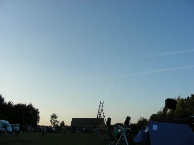 Die Abenddämmerung sah am Sonnabend vielversprechender aus, als am Vortag. Im Hintergrund ist die Leiter zum 42"-Dobson zu sehen.
