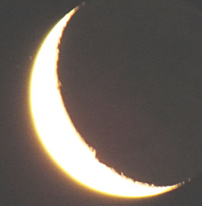 Dann zog eine Wolke durch. Eine Minute vor Beginn der Bedeckung gab die Wolke wieder den Blick frei. Die Annäherung der beiden Himmelskörper ist deutlich zu erkennen.