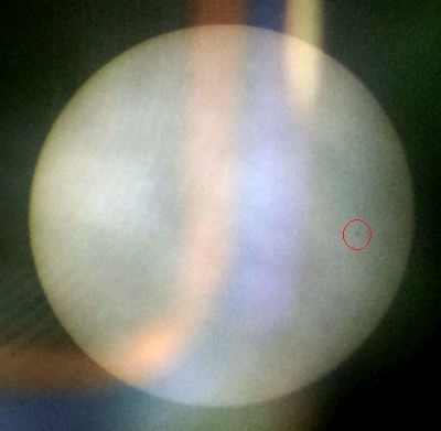 Um 12 Uhr wurde die Wolkendecke dünner. Die Sonne wurde sichtbar. Im Spektiv mit Filterfolie waren zwei Sonnenflecken zu sehen. Einer war sogar recht groß.