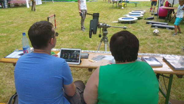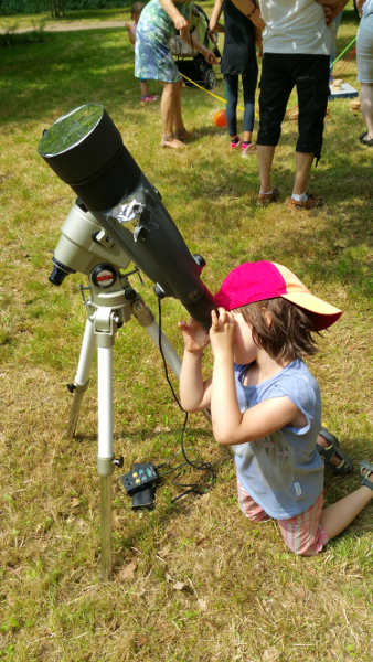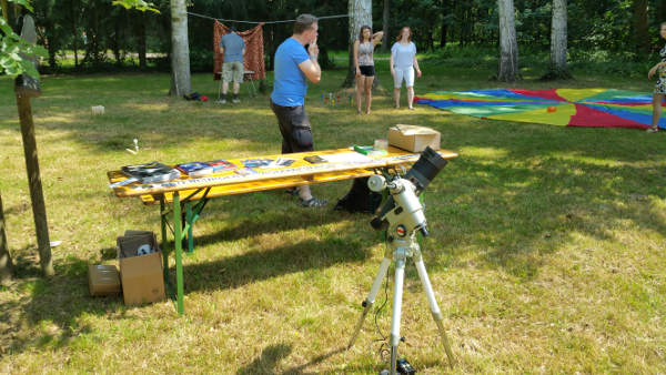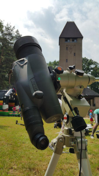 Als das Fest 11 Uhr begann, schien die Sonne bei Hitze um 30°C. Die Sonne ließ sich mit dem 10cm-Yukon gut beobachten, zeigte sich allerdings fleckenlos.