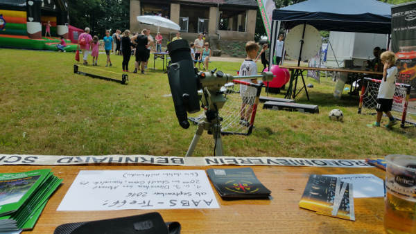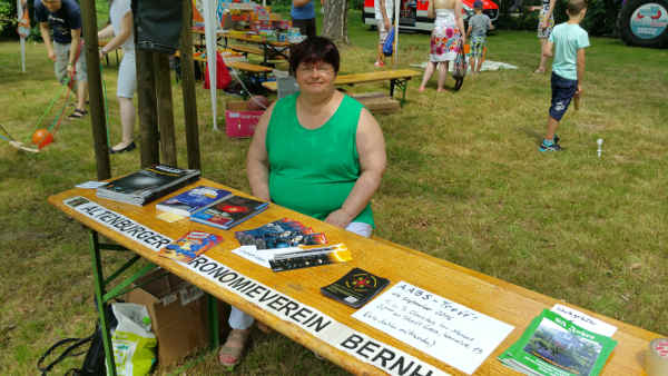 Am Infotisch waren Lesezeichen mit Bildern und Daten von Sonne und Planeten bei den Kindern begehrt. Die Lesezeichen waren von der ausgefallenen Beobachtung zum Astronomietag übrig. Auch beim Kinderfest am Teehaus am 14. August werden noch welche verteilt.