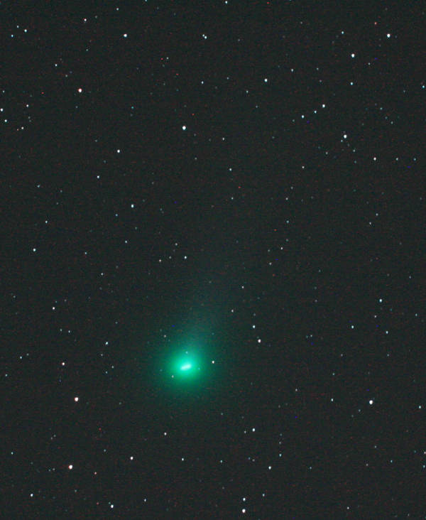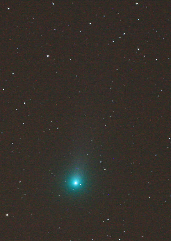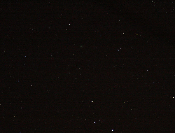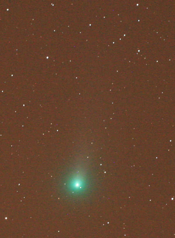 Auf der Übersichtsaufnahme ist der Komet oberhalb der Bildmitte zu sehen.