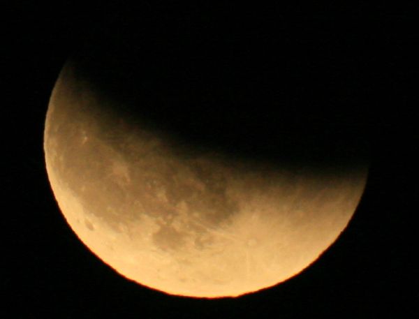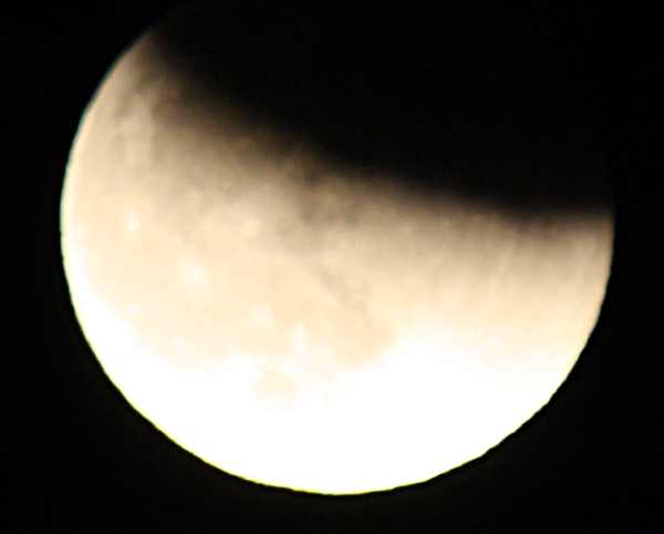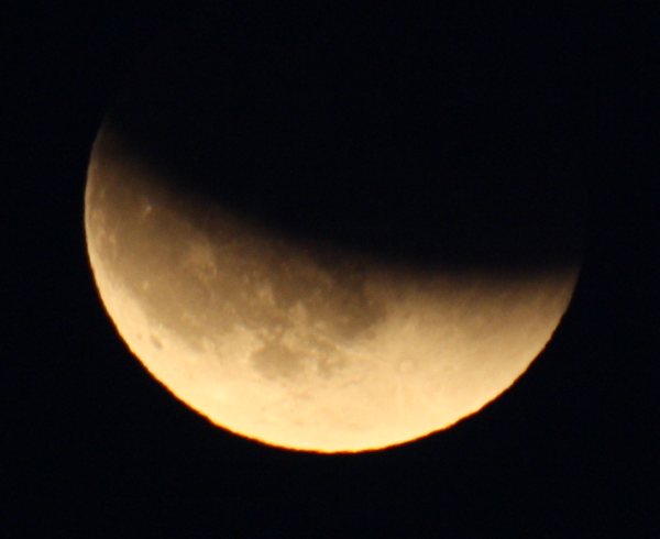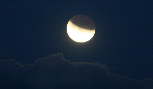 Wenige Sekunden später ist der teilverfinsterte Mond fast vollständig zu sehen.