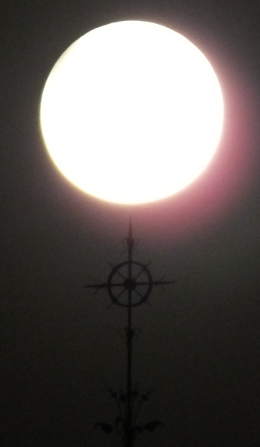 Frank Vohla, 21:48:45 MESZ; Der Mond "überquert" die Spitze des Turmes der Nathanaelkirche.