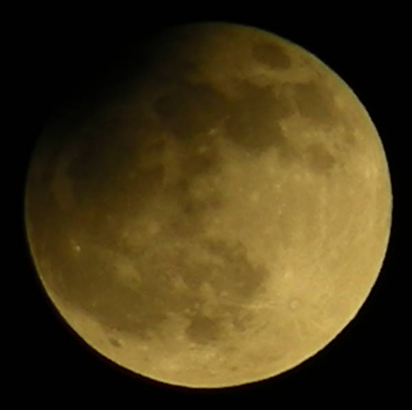 Sechs Minuten vor der maximalen Phase erscheint der im Kernschatten liegende Teil des Mondes in starkem Kontrast zum angrenzenden Halbschattenbereich.