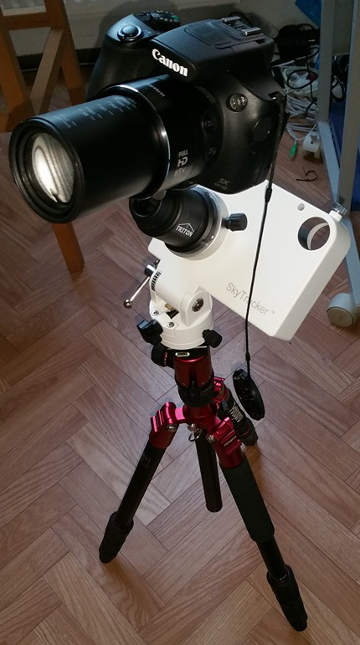 erreicht. Die kleine iOptron-Nachführeinrichtung ermöglichte während der Totalität ausreichende Belichtungszeiten.