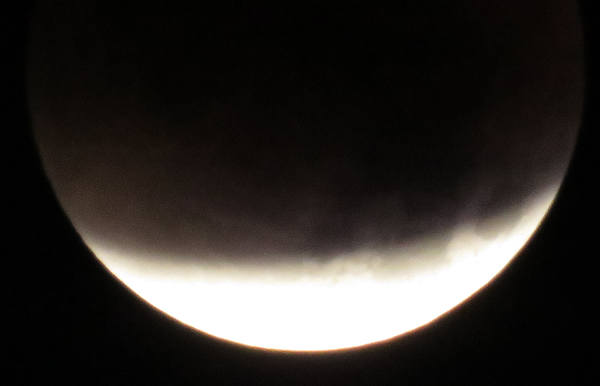 3:58 - Rotes Licht, dass durch die Erdatmosphäre in die Finsterniszone eingestreut wird, ist zu sehen.