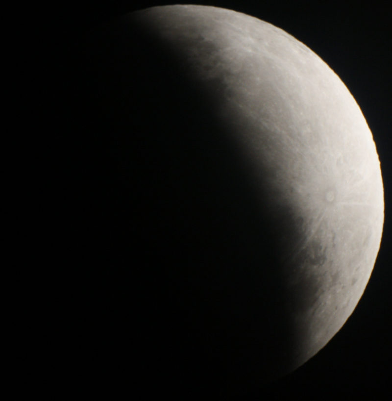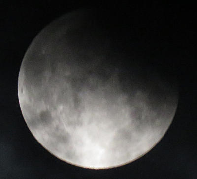 Bei einer Belichtungszeit von 1/2s und ISO 400 am TAL 150/1200 zeigte sich auch etwas vom Bildmond (Blut-Zeitung). Längere Belichtungszeiten brachten nicht mehr davon, da nur Wolkenschleier aufgehellt wurden.