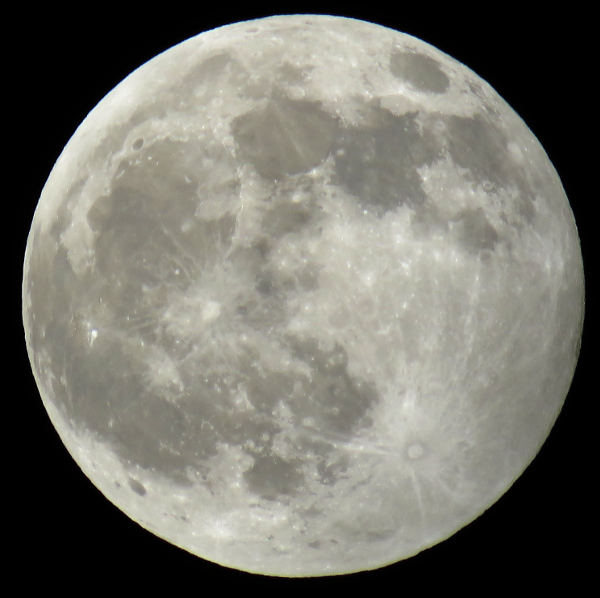 Erst, wenn der Kontrast stark gequält wird, sieht der Mond am rechten Rand deutlicher angeknabbert aus.