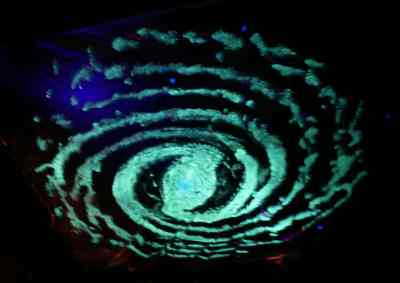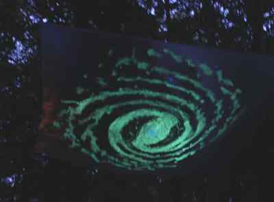 Hier ist die Galaxis fertig. Links im Vordergrund ist das improvisierte Schutzzelt für den UV-Scheinwerfer zu sehen.