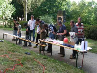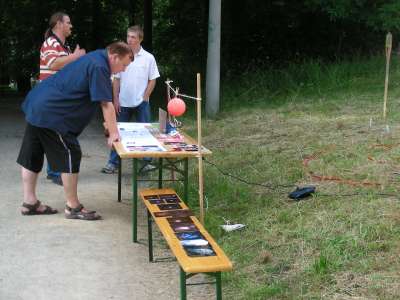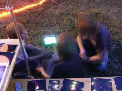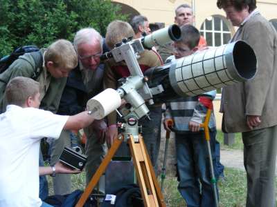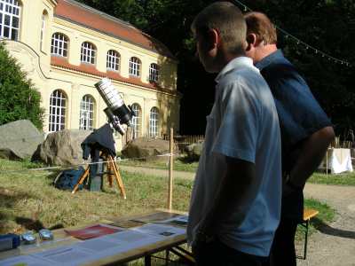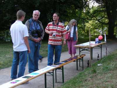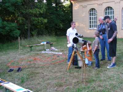 Die meisten Besucher(inn)en kamen in Gruppen, in denen sich die Fußballbegeisterung unterschiedlich verteilte. Weniger Fußballbegeisterte nutzten das Hängenbleiben der Gruppe, um sich mit Astronomie zu beschäftigen.