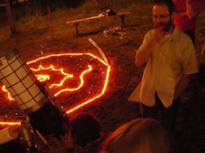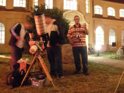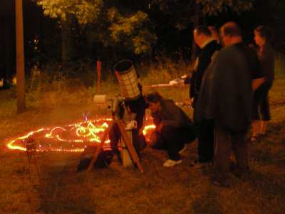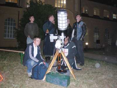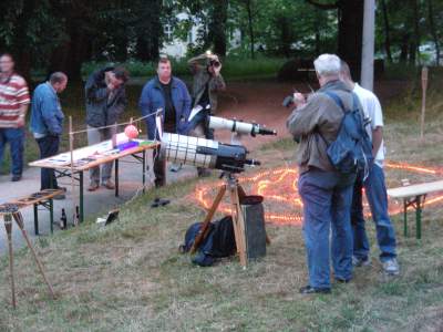 Noch vor Spielende ließen sich erste Objekte am Himmel beoabchten. Der Standort war nicht optimal und so blieb es bei hellen Doppelsternen.