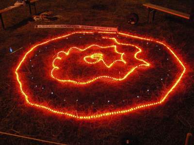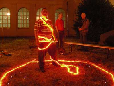 Das Flächenmodell mit Lichtschläuchen, Knicklichtern und LED-Kette.