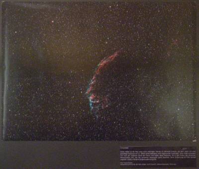 An der Südwand, wo zur Museumsnacht der 16"-Dobson von Thomas Fischer stand, hängen nun zwei Deep-Sky-Aufnahmen von Thomas Fischer, links der Schmetterlingsnebel und rechts der Supernova-Überrest Cirrusnebel im Schwan.