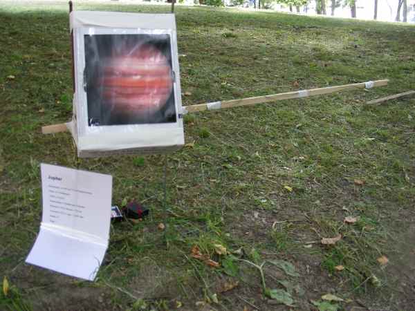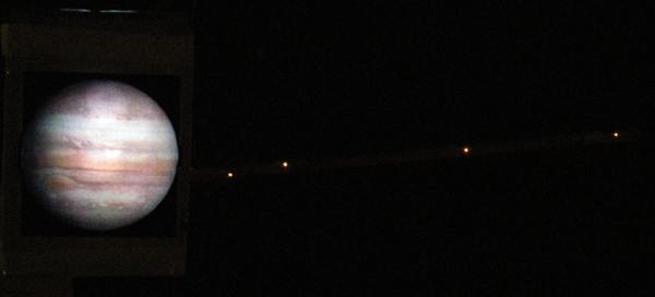 Bei Tageslicht war die Illumination noch nicht auffällig. Dafür war es noch möglich, die Geräte als Ganzes zu fotografieren. Hier Jupiter mit den vier Gallileischen Monden.