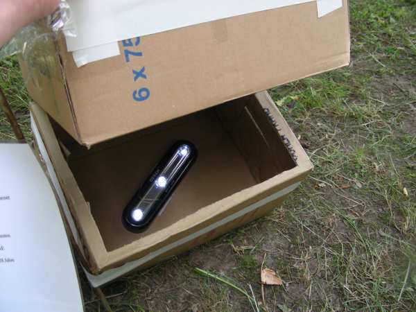 Zu Beginn war im hellen Sonnenschein die Illumination noch nicht wirksam und manche Leute vermuteten Tasten oder Okulare an den Kartons.