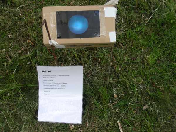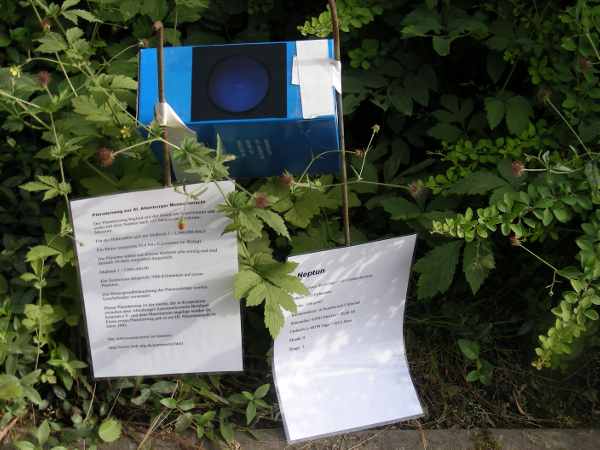 Die beiden äußeren Planten Uranus und Neptun standen im Gegensatz dazu in 46 Metern Entfernung voneinander in der Nähe des bzw. vor dem Lindenaumuseum.