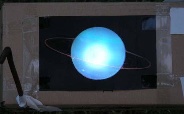 Die Planetenfots wurden mit Ausnahme von Saturn mit Laserdrucker auf Folie gedruckt. Der schwarze Hintergrund musste mit einm CD-Stift nachgezeichnet werden, weil sonst die LEDs zu sehr durchschienen. Im Innern der Kartons wurde das Licht mit Transparentpapier gestreut. Sonst wären die LEDs durch die Folien hindurch zu sehen gewesen.