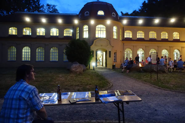 Gegen Ende der Museumsnacht begann es zu regnen. Wir stellten den Infotisch in den Eingangsbereich, wo die Lichtverhältnisse besser waren.
