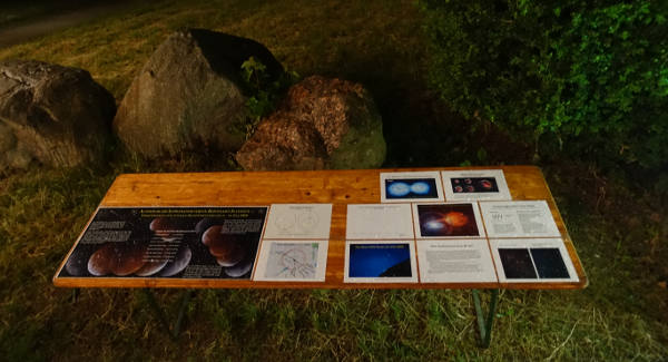 Der Infotisch enthielt drei Themenfelder, links die Mondfinsternis am 27.7. und die gleichzeitig stattfindende Marsopposition und rechts Novae, wofür die Nova V392 Persei den Anlass gab, die am 29.April ausgebrochen war.