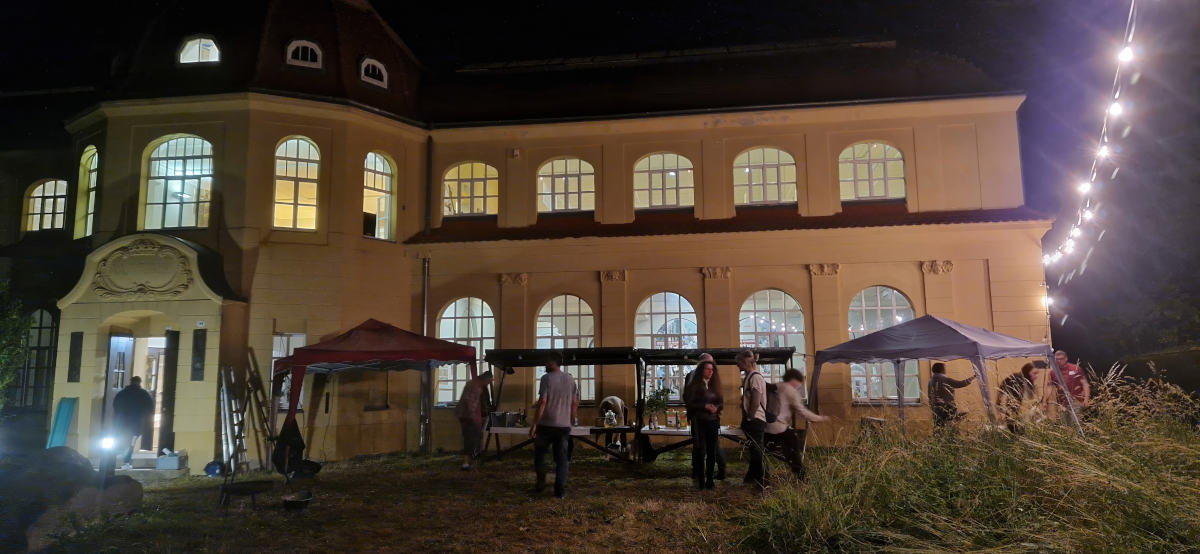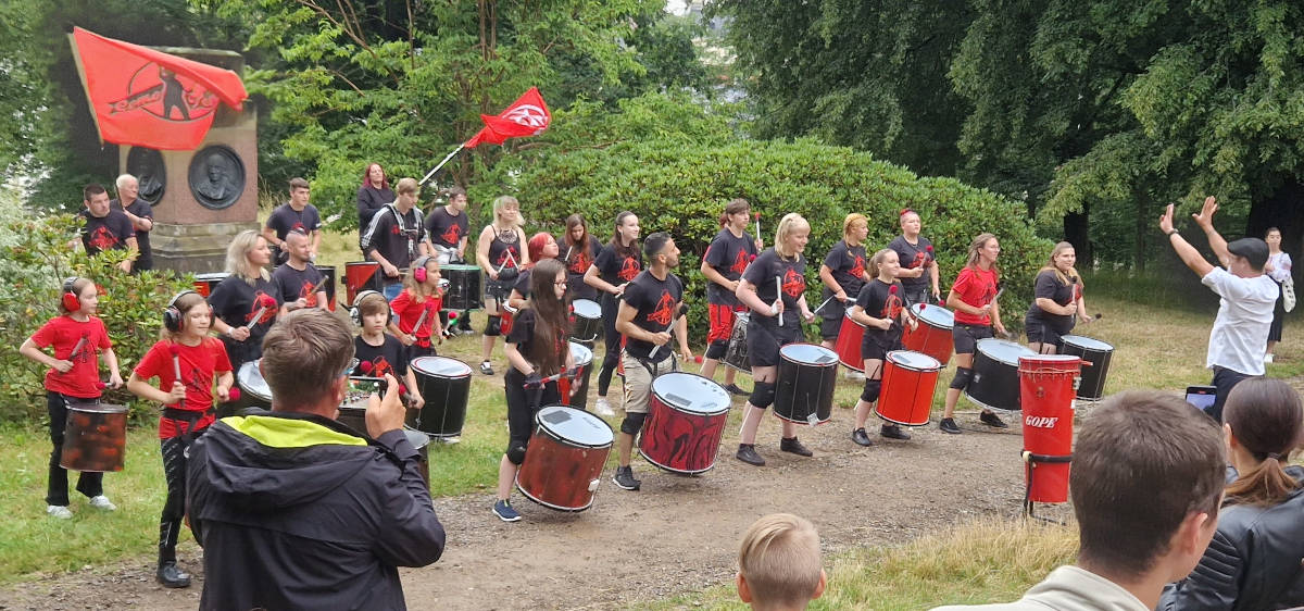 Für musikalische Unterhaltung sorgte draußen die Samba-Gruppe Como Vento. Zu diesem Zeitpunkt hatte es zwar aufgehört, zu regnen, aber es blieb stark bewölkt und eine geplante Sonnenbeobachtung war nicht möglich. Später spielte im Obergeschoss eine ukrainische Band. Oben ist zur Zeit eine Ausstellung zur Ukraine zu sehen.