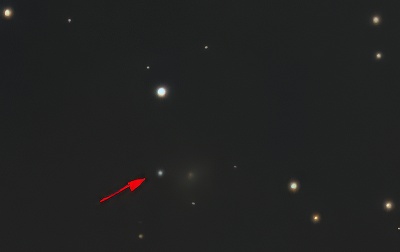 27. Mai: SN 2025fvw ist nur noch wenig heller als der schwache Stern oberhalb der Galaxie. |