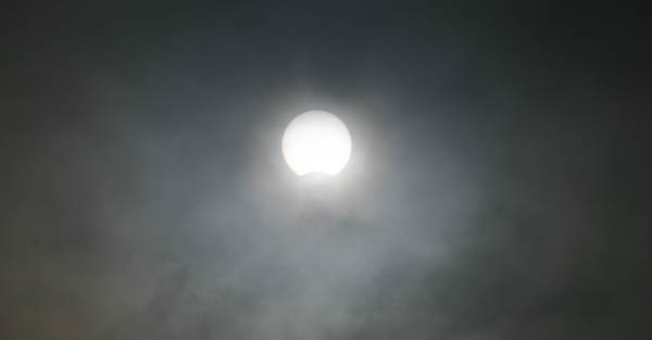 die Wolkendecke stellenweise so dünn, dass man die partiell verfinsterte