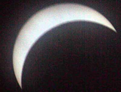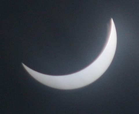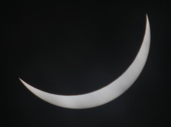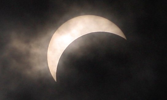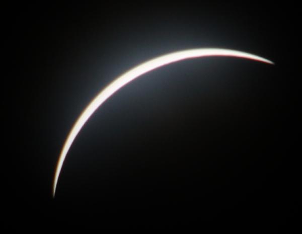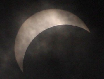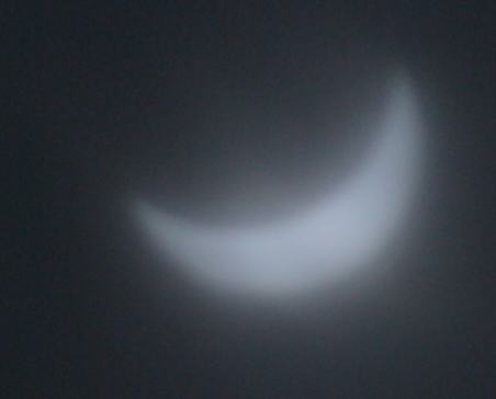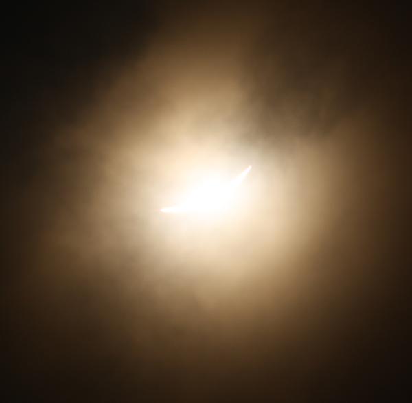 9:34:06; 1/800 s, ohne Filter: Bis zur Totalität sind es nur noch Sekunden. Ein Diamantring kam nicht zustande, weil Wolken das Licht verschmierten.