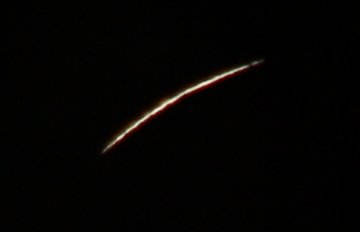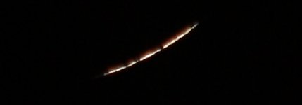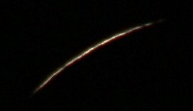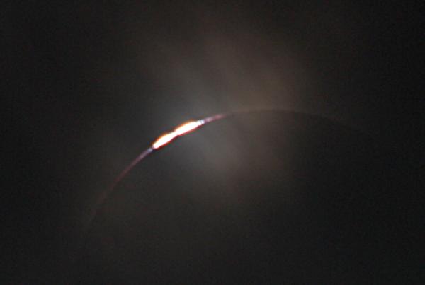 9:40:20; 0,4 s: Zum dritten Kontakt wird wieder eine Perlschnur sichtbar. Die Wolken irisieren etwas. Um die Beads herum erscheinen sie blau und weiter draußen rötlich.