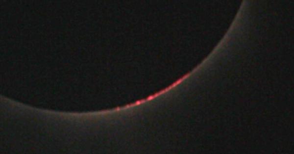 9:36:10: Die große Protuberanz ist hinter dem Mond verschwunden.