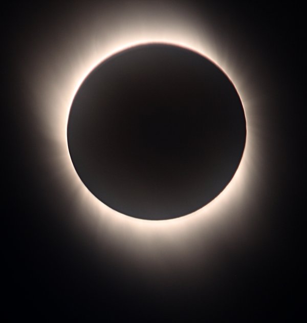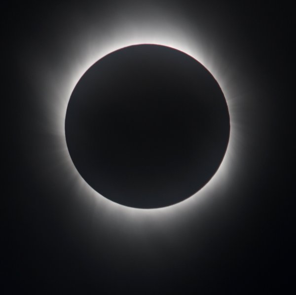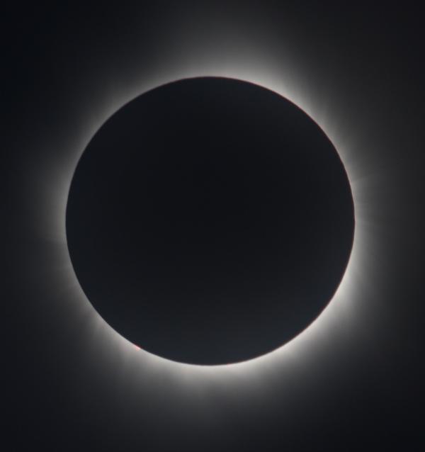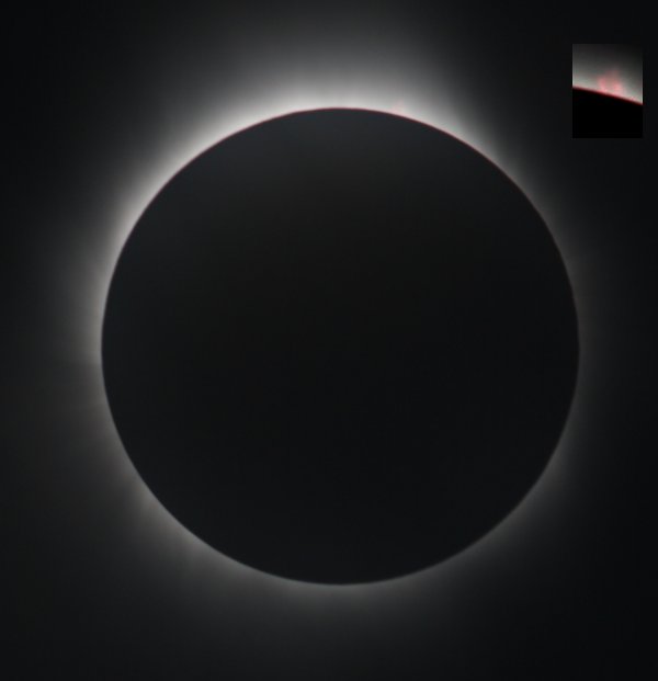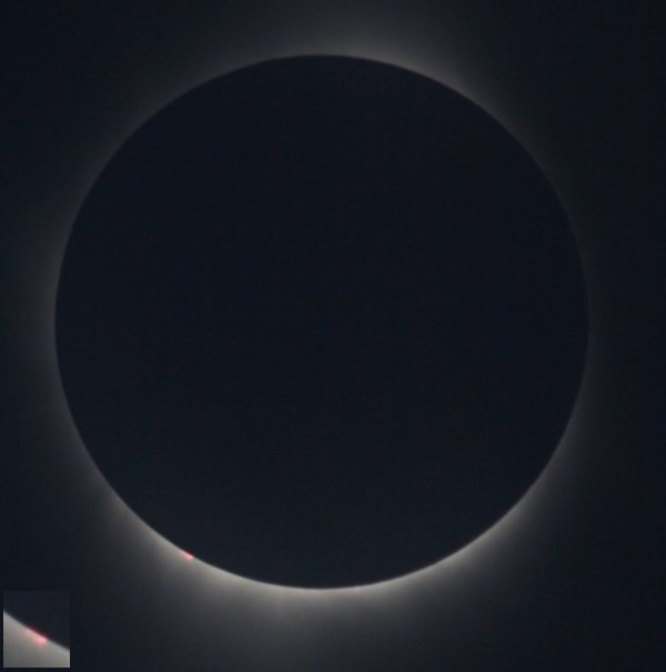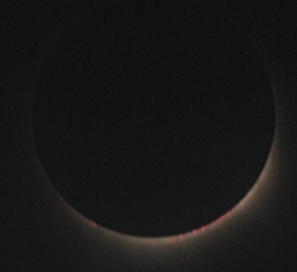 9:34:38; 1/4 s belichtet: Totalität, kleine Protuberanzen sind sichtbar.