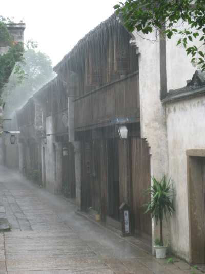 Die letzten Wetterprognosen, die wir vor dem Abflug anschauten, sahen deprimierend aus. Trotzdem hielt sich sonniges Wetter, auch, als wir am 21. Juli im malerischen Wasserdorf Wuzhen eintrafen. Am Abend änderte sich das jedoch und ein Gewitter zog auf.