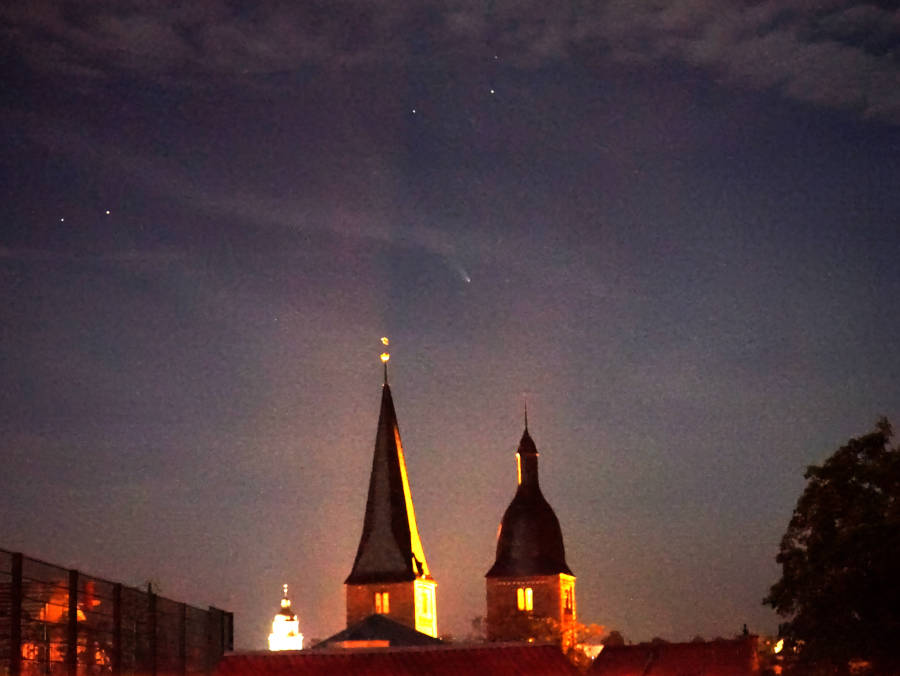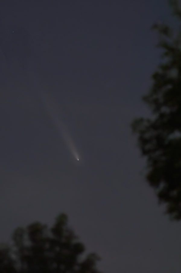 An diesem Abend zeigte sich der Komet in Wolkenlücken. Mehr als zwei Minuten Belichtungszeit war dadurch nicht möglich.