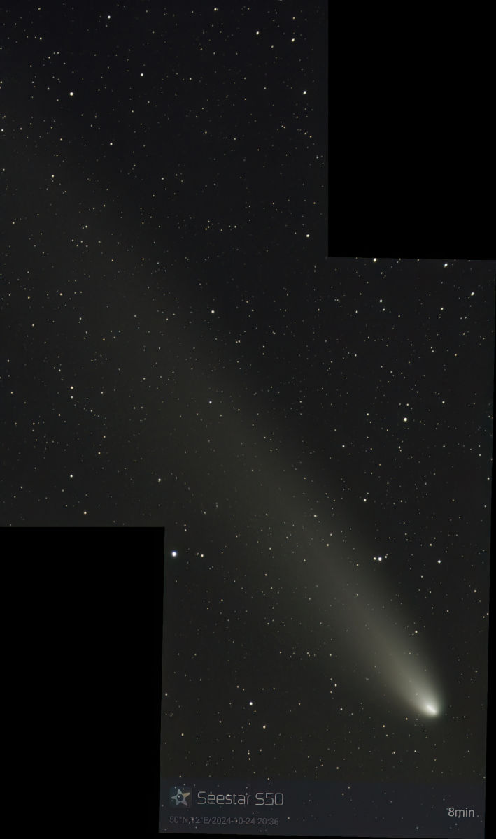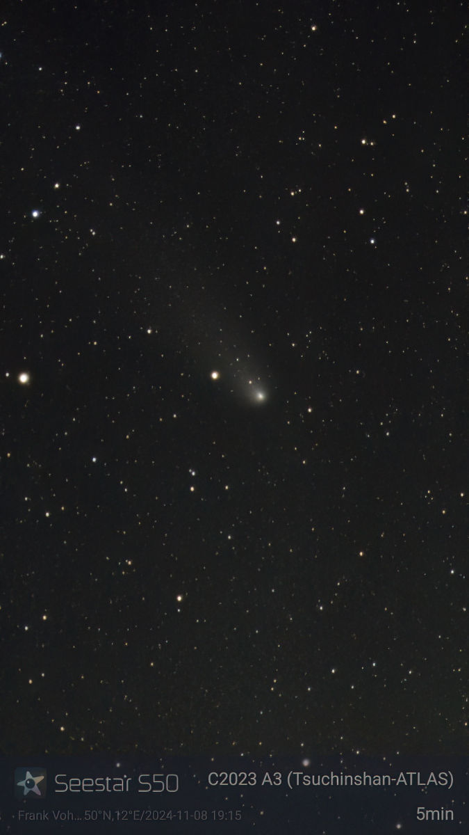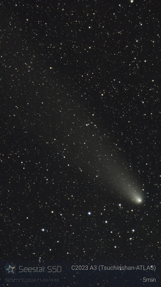 8.11.: Der Mond war wieder da und die Wetterlage wurde zunehmend neblig. Trotzdem konnte das Seestar S50 den Kometen noch abbilden.