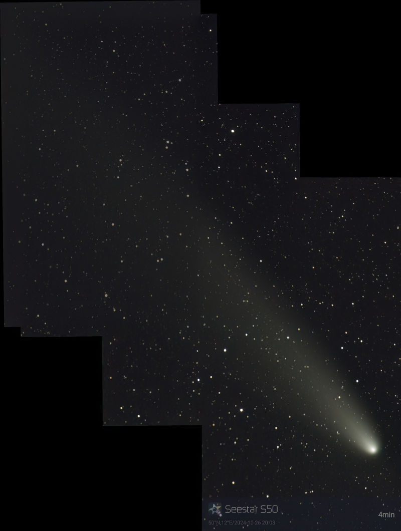 24.10.: Mosaik aus zwei Aufnahmen mit einem Seestar S50 auf der Fensterbank, zusammengesetzt mit Fitswork, F.Vohla