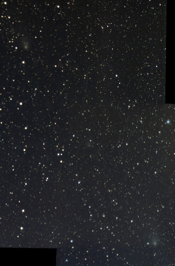 Am Silversterabend war die Luft schön klar und noch nicht durch Feuerwerk verqualmt. So hellten auch die Blitzlichter der Feuerwerkskörper den Himmel nicht sehr auf. Die Sternenhintergründe der letzten drei Aufnahmen zeigen, dass sich der Komet noch merklich bewegt.