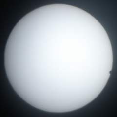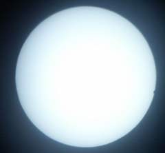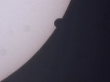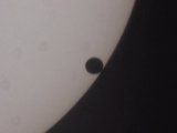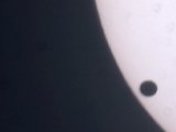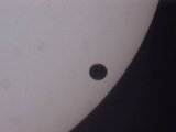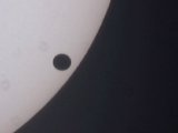 13 Uhr wurde es wieder spannend. 13.03 Uhr sollte der Austritt beginnen und alle lauerten auf das Tröpfchenphänomen. Das Bild zeigt eine Webcam-Aufnahme am TAL 150/1200. 13.23 Uhr war der Venustransit dann vorbei.