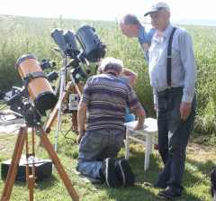 Nach 10 Uhr ging es auf der Wiese recht gemütlich zu. Die Aufnahme entstand mit einer Minolta Dimage 7 in Okularprojektion am C8.