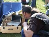 13:20 | iBook G4 beim Aufzeichnen | Wegen großer Umgebungshelligkeit musste der Rechner mit einer Decke abgeschattet werden. | Die Webcam am Okularauszug des TAL 150/1200 |