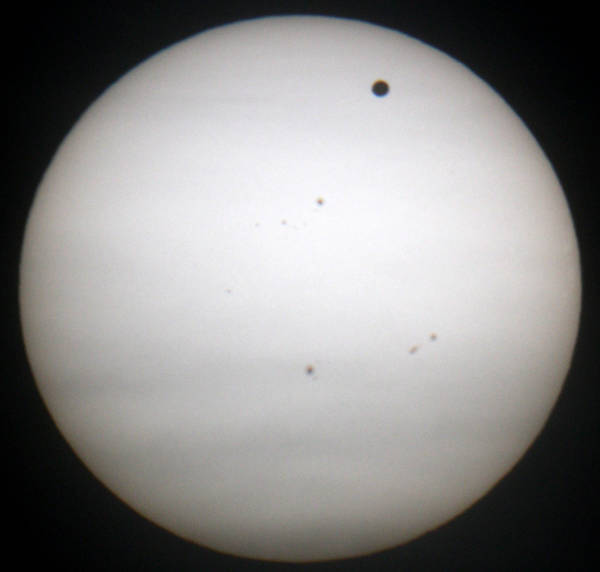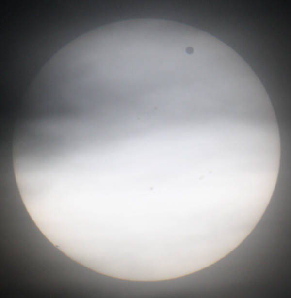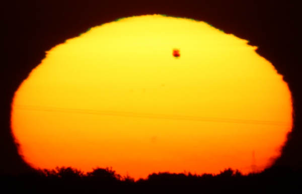 5:01 MESZ: Die beiden "Venusse" vereinigen sich wieder. Am rechten Rand ist vor der Sonne ein entfernter Hochspannungsmast zu sehen.