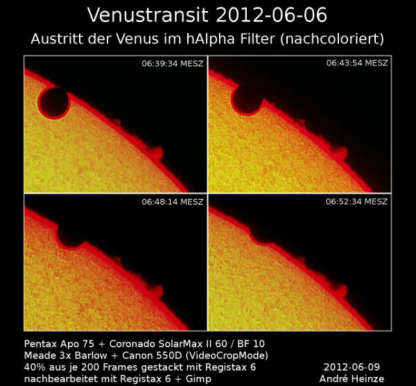 Aufnahmen des Austritts im H-Alpha-Bereich von André Heinze