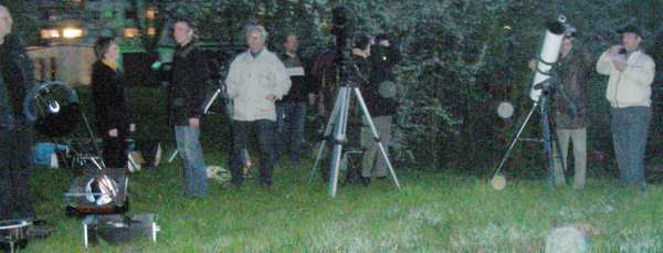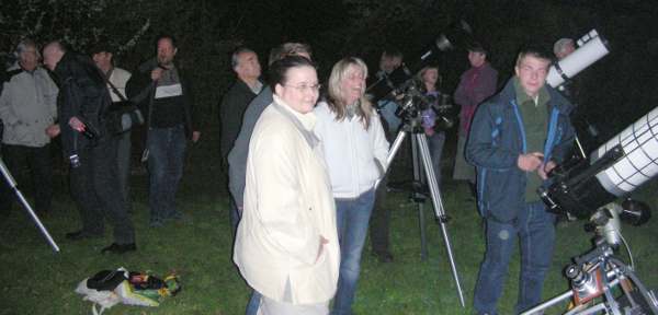 Die Beobachtung wurde in der Presse angekündigt (Kurier - s. Bild - und OVZ) und auf astronomietag.de angemeldet. Trotz der parallel laufenden Kneiptour (Kneipenmusikfestival) war die Beteiligung für unsere Verhältnisse gut, ca. 20 Menschen beobachteten an fünf Fernrohren.